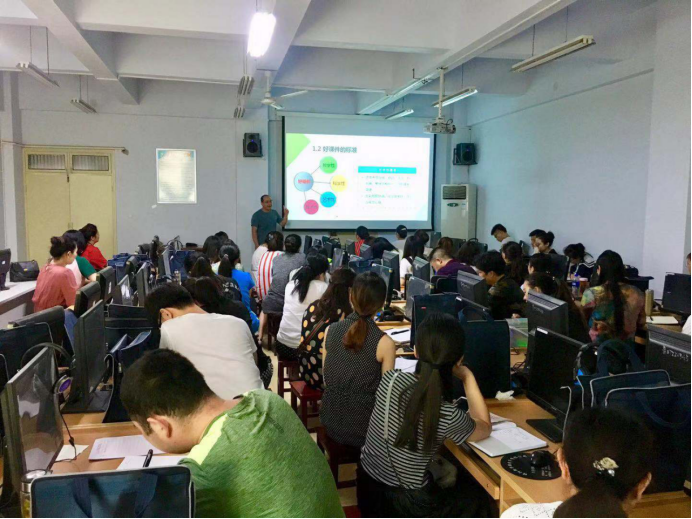 刘琦老师从掌握课件制作基本理论、建立课件设计开发制作的正确思维、掌握课件制作的技术与方法、具备制作“好课件”的能力四大板块着手,采用边讲解边演示的方法,循序渐进地进行培训,学员们认真学习,积极思考,对存在的问题当场提问,得到了刘琦老师的一一指导。