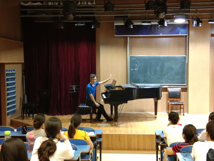 8月9日,为提高“省培”学员合唱指挥能力,tyc122ccVIP副经理陈新宇教授在艺术楼八音讲堂为“省培”学员讲授合唱指挥课。