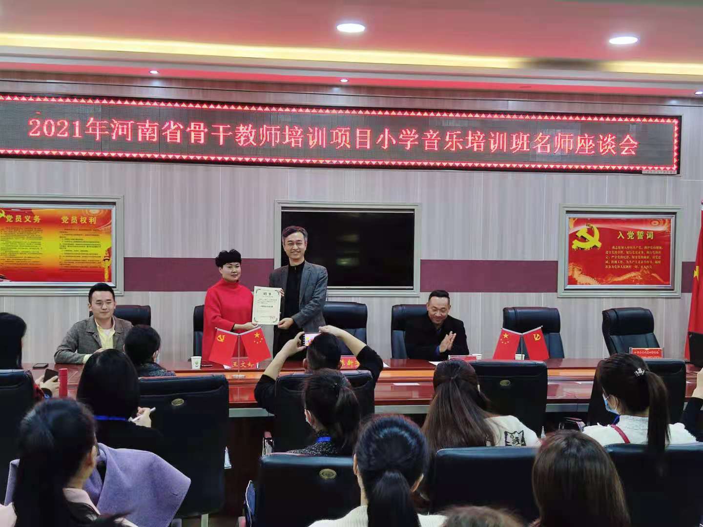 10月23日下午,“2021年河南省骨干教师培训项目小学音乐培训班”名师座谈会在艺术楼会议室举行。河南省名师李大强、王文婷,tyc122ccVIP经理陈新宇,省培专业班主任梁凯枫博士参加了座谈会。座谈会由梁凯枫博士主持。