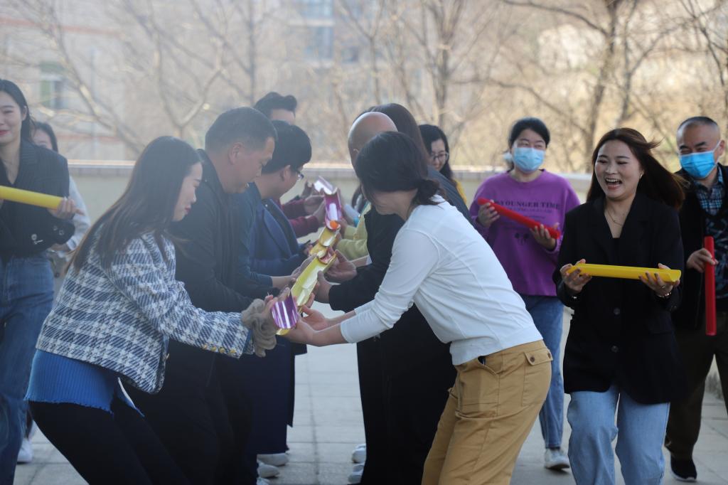 随后,由老员工心理健康教育中心袁战阳老师开展素质拓展,参训学员在心理拓展园开始了本次拓展活动。此次素质拓展以互相认识、增强团队协作意识为主题,在袁战阳老师的精心组织下,学员们通过参与各种集体游戏对新团队的成员有了进一步的认识,增进了相互间的了解。