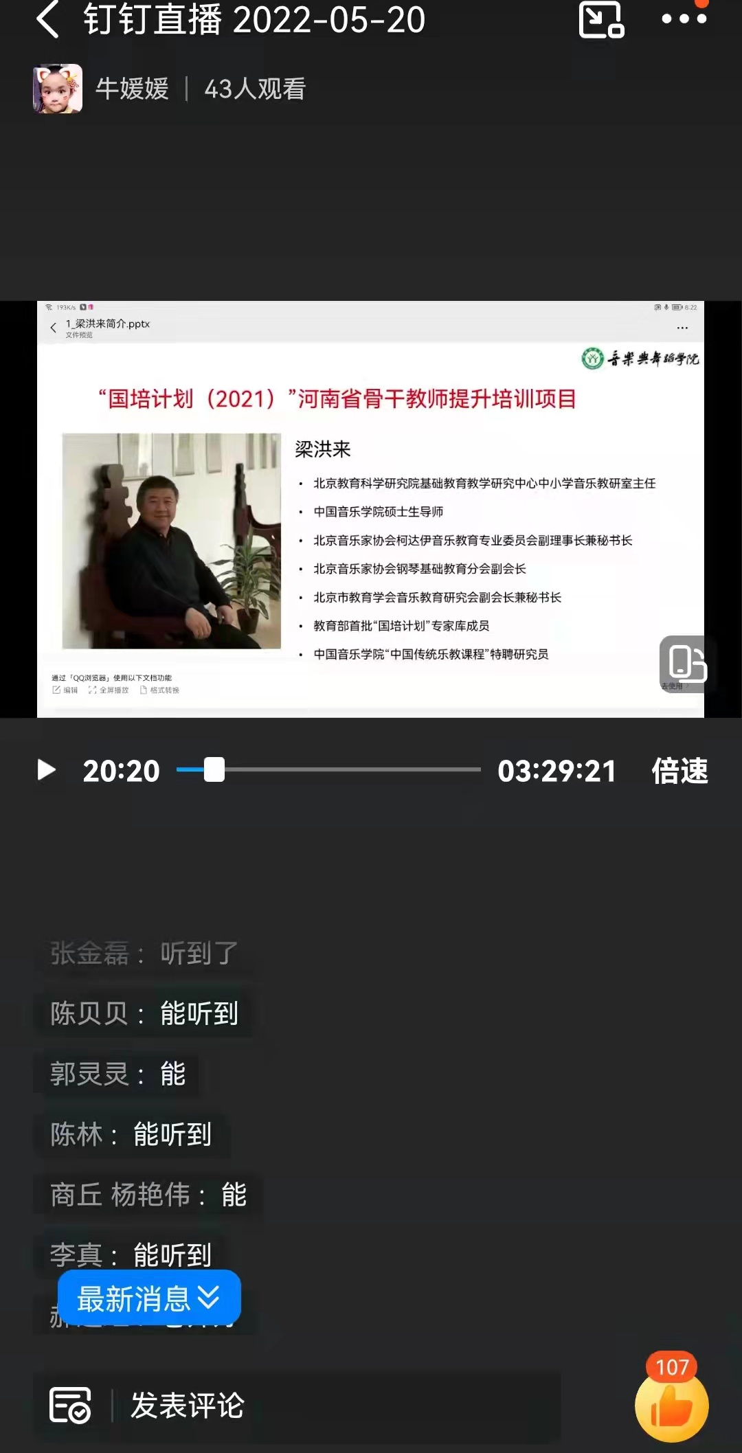 5月20日,应tyc122ccVIP之邀,北京教育科学研究院梁洪来教授为国培计划——县级骨干教师提升培训小学音乐教师培训班学员讲授《指向员工音乐能力提升的教学设计》。由于疫情防控,本次采用线上授课。