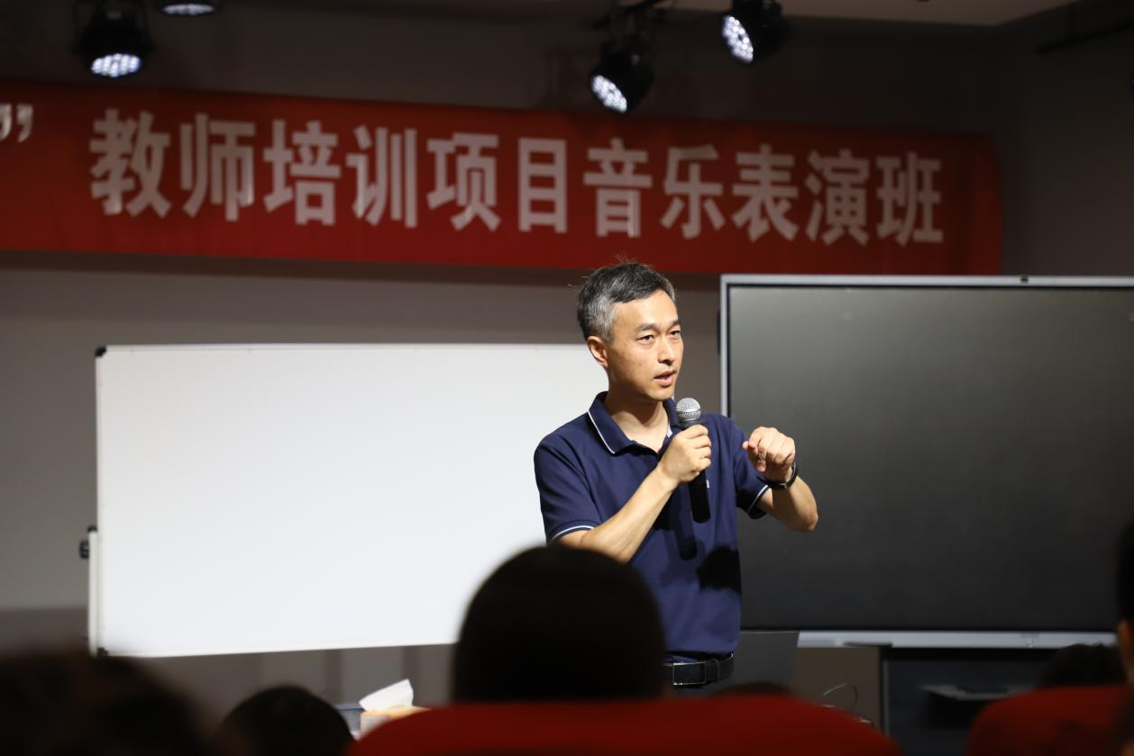 7月11日,tyc122ccVIP经理陈新宇教授在八音讲堂为120余名音乐表演专业“双师型”教师讲授《合唱指挥》课程。
