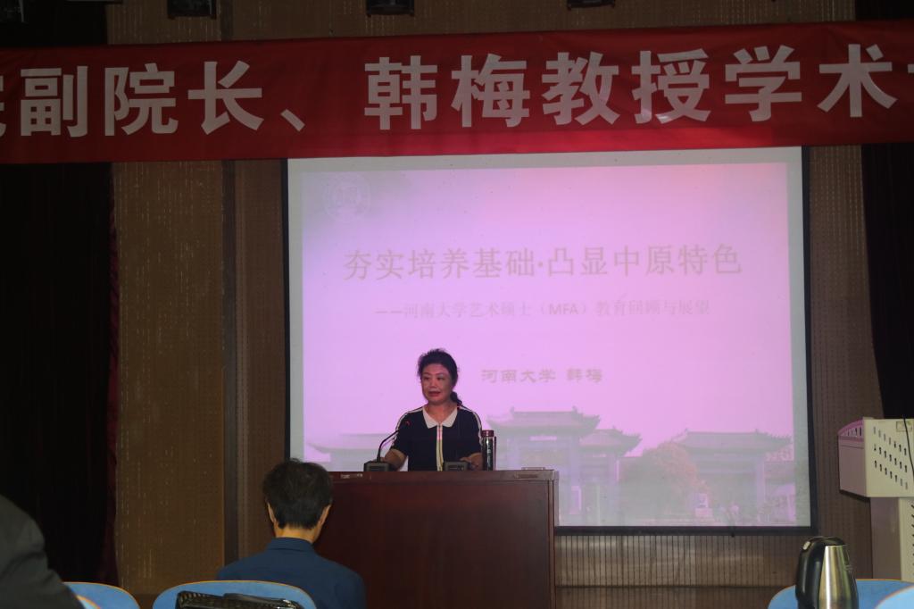 9月25日,韩梅教授在艺术楼八音讲堂做了题为《夯实培养基础  凸显中原特色——艺术硕士(MFA)教育回顾与思考》的讲座。梅结合学位点建设的内容当前研究生与硕士学位申报情况开展艺术硕士专业学位教育的总体目标和要求音乐创作和音乐表演专业的自身规律与社会需要等方面,对如何培养具有较高水平的音乐创作和音乐表演技能、系统的专业知识、较高艺术审美能力和较强艺术理解能力与表现力的高层次应用型人才做出了具体阐述。讲座结束后,韩梅教授对现场老师和同学们提出的问题予以了详细的解答和深入交流。韩梅教授的报告会学术视野十分开阔、知识渊博、语言幽默,旁征博引,具有很强的学术性和实践意义,并给予广大师生深刻启发,较好拓展了广大师生的学术视野。