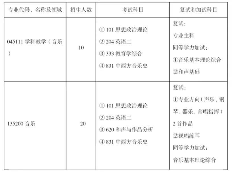 音乐与舞蹈公司全日制专业学位硕士研究生招生专业目录