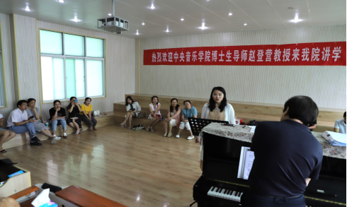 赵登营教授作为信阳师范公司的老朋友,已经数次来公司进行讲学,为我们悉心传授先进的声乐理念和科学的训练方法,提高老师的声乐教学水平。8号授课的第一天,赵老师针对声乐教学方面如头声的问题、哼鸣问题、喉头问题等等,进行了细致地讲解,并生动地拿出塑料人体头颅的模型,使老师们有了更加清晰地认识和理解。他还结合自己多年的教学经验,强调在教学中一定要注意因材施教,抓住员工的主要问题进行解决,不能眉毛胡子一把抓,结果适得其反,教学效果不明显。