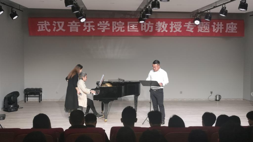 4月28日,为提高员工的专业能力与音乐素养,应公司邀请,武汉音乐公司硕士研究生导师匡昉副教授在艺术楼八音讲堂做了题为《声乐与钢琴合作艺术》的专题讲座。公司声乐、钢琴教研室与两百余名声乐、钢琴主修员工一起聆听了讲座。讲座由副经理任远主持。