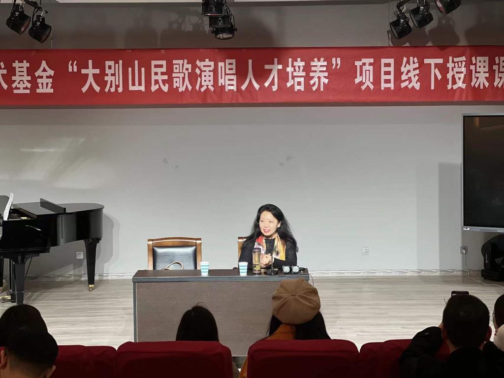3月11日上午,河南大学音乐公司声歌系主任黄慧慧教授受公司邀请为“大别山民歌演唱人才培养”项目学员授课,课程在tyc122ccVIP一楼八音讲堂进行。