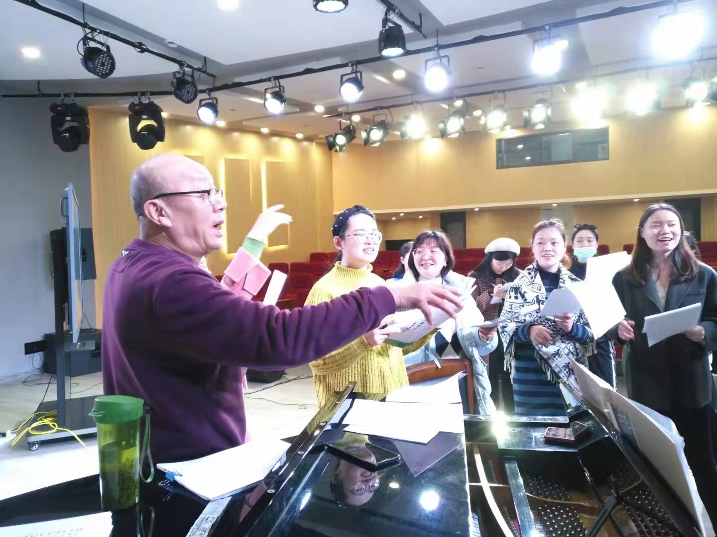 为高质量完成大别山民歌汇报音乐会,3月23日下午,在信阳市音乐家协会主席,信阳民歌研究会会长刘宏奎和信阳市音乐家协会理事,信阳市民歌研究会副主席李鸣凤带领下,学员们在公司一楼八音讲堂进行了紧张有序的排练。彩排过程中,刘宏奎主席根据传统民歌的特点,从作品的速度和节奏、方言的准确性、情绪的把握和演唱形式等多方面进行了细致的处理,尤其是在语言上,刘宏奎主席统一了在演唱中的咬字问题,表示要用当地的方言演唱并亲自示范了歌曲中的方言读白部分。李鸣凤副主席强调了演唱中的倚音问题,要准确的把倚音演唱出来,才能更加贴近民歌的味道。