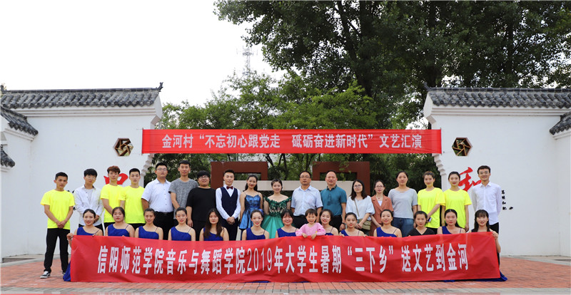 为积极响应共青团中央的号召,引领教育广大青年学子在实践中了解民情,增长才干,砥砺品格,7月5日至7日,tyc122ccVIP“励志青春行”文艺服务社会实践团队在公司党委副书记郭振,团委老师张莹莹、唐晓云、张焕然的带领下,一行30人来到信阳新县新集金河村,利用自身专业知识技能开展送文艺下乡活动,为推动新农村建设贡献力量。