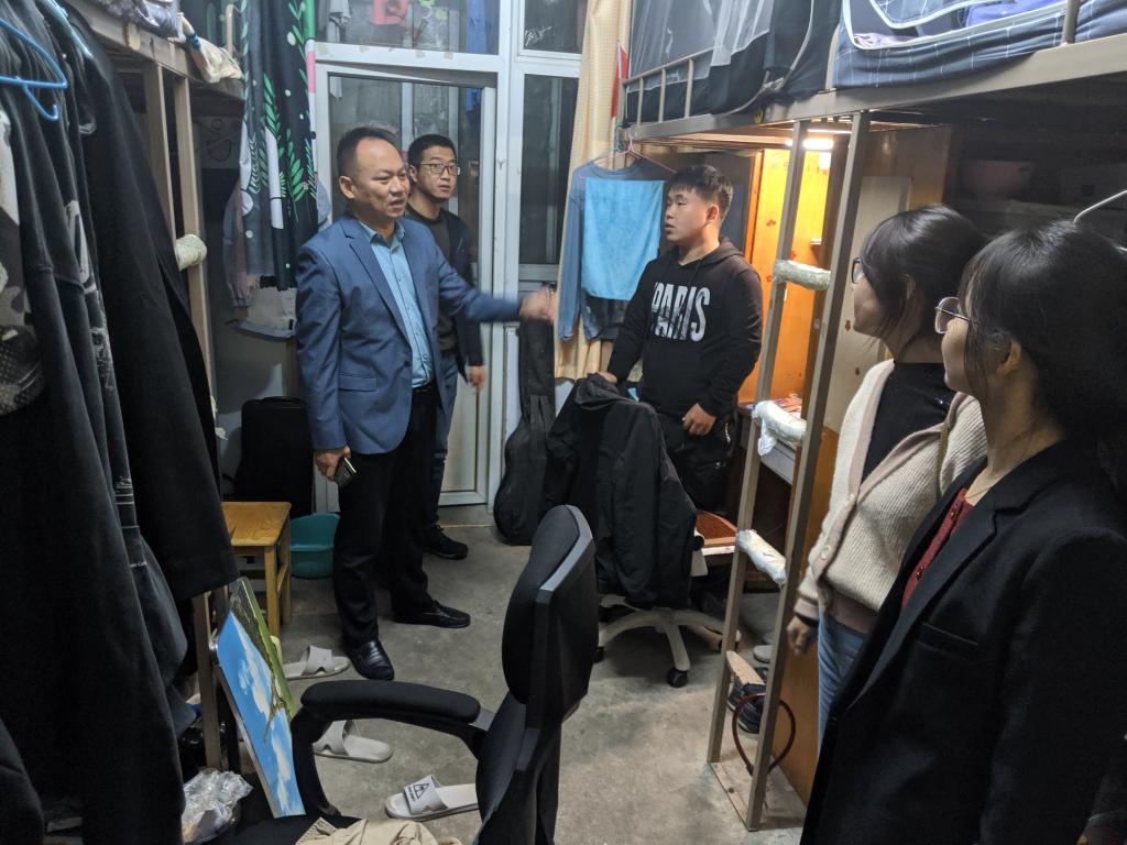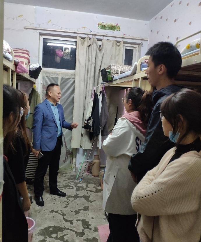 为加强员工宿舍安全管理,进一步了解公司员工的学习生活情况,10月4日,党委副书记郭振带领全体辅导员班主任一同走访了员工宿舍。