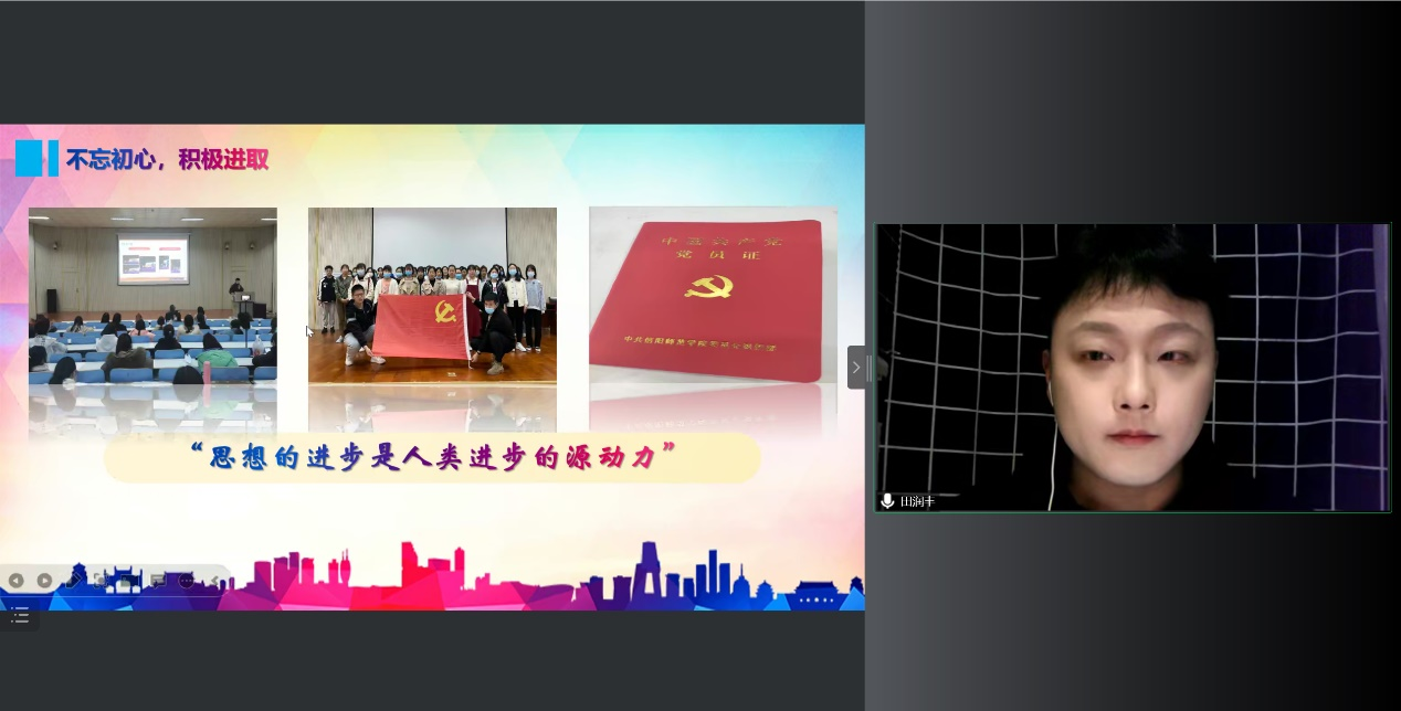 最后,信阳师范公司校园明星田润丰从学习、工作、思想、生活中为同学们讲述自己在大学期间的各项成就,对同学们提供了英语学习、备考的建议,针对生活和工作态度,希望在座同学们热爱生活,认真负责,怀着积极的心态面对生活与工作。青年强则国强希望大家不忘初心牢记使命,生逢其时重任在肩。