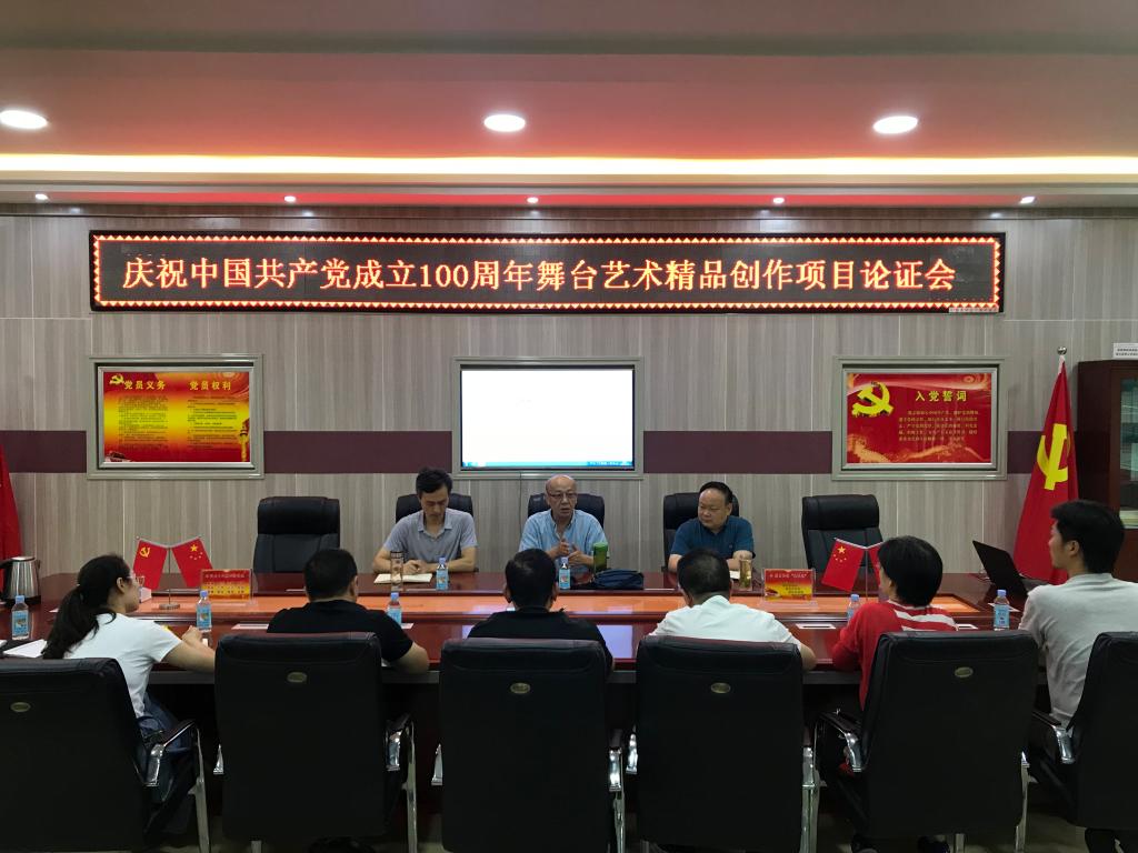 7月24日,公司在艺术楼三楼会议室召开“庆祝中国共产党成立100周年舞台艺术精品创作项目论证会”,邀请国家一级作曲、信阳市音乐家协会主席刘宏奎对舞台艺术精品创作项目选材与申报进行针对性的指导。副经理陈新宇、任远及相关老师参加了会议,会议由陈新宇主持。