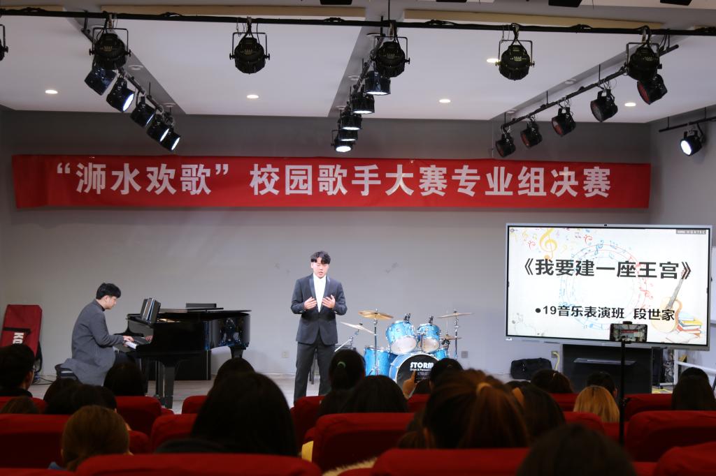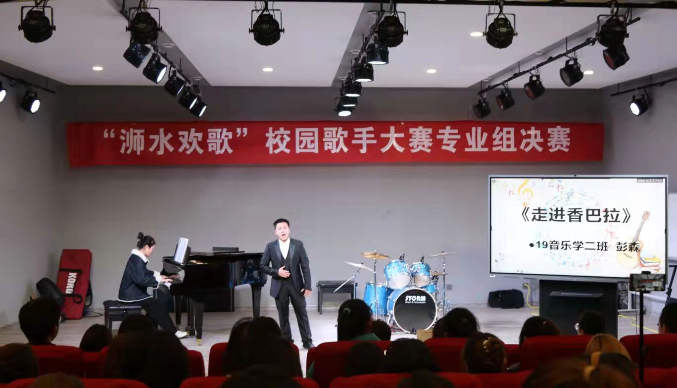 弘扬青春旋律,唱响和谐校园,由信阳师范公司校团委主办,tyc122ccVIP承办的“浉水欢歌”校园歌手大赛专业组比赛决赛,于12月3日在艺术楼八音讲堂拉开帷幕。公司声乐教研室韩冰,刘世嵘,刘红侠,郭楠楠,梁凯枫等五位专业老师出席活动并担任评委。