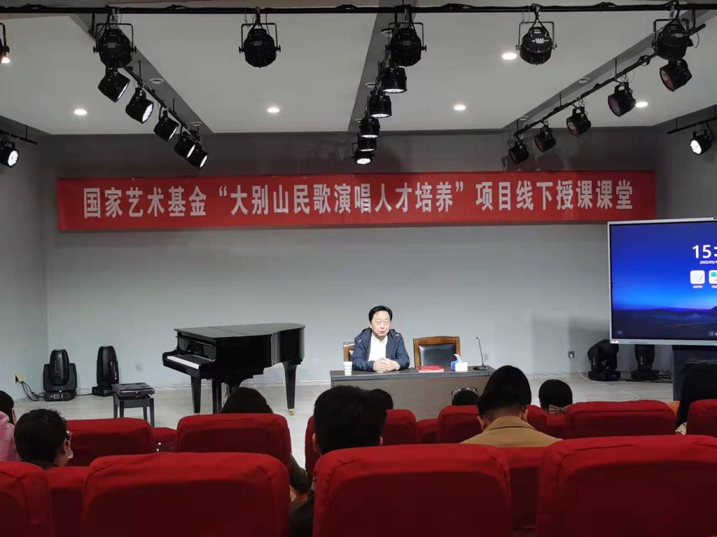 3月12日下午,中国舞蹈家协会理事,国家一级导演张居淮教授在公司tyc122ccVIP音乐厅为学员们带来了一场有关《大别山民歌与民舞》的讲座。讲座由公司韩冰副教授主持进行。