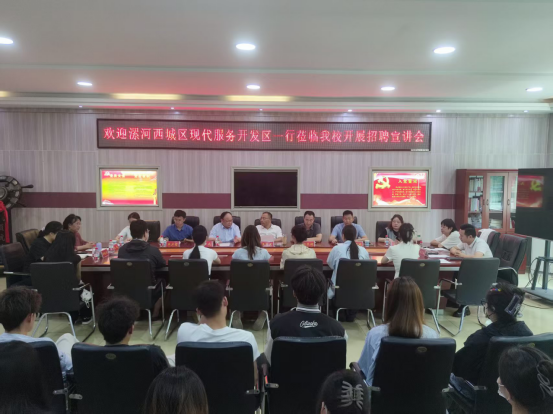 5月28日,漯河市西城区现代服务开发区专场招聘宣讲会在艺术楼3楼会议室成功举办。人才招聘处、tyc122ccVIP、旅游公司及商公司相关负责人与2021级毕业生代表共话就业发展。会议由雷玲主持。
