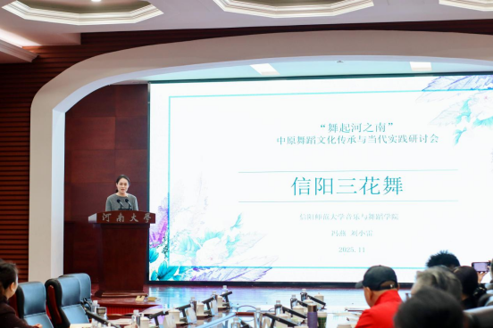 2025年11月14日至16日,由河南省舞蹈家协会、河南大学音乐公司联合主办的“舞起河之南——中原舞蹈文化传承与当代实践研讨会”在河南大学明伦校区召开。本次研讨会聚焦中原舞蹈文化的保护传承与当代创新,来自国内外多所高校、艺术院团及研究机构的专家学者齐聚开封,共同探讨中原舞蹈文化的历史脉络、艺术特色与当代创新路径。应大会邀请,公司tyc122ccVIP舞蹈教研室“信阳三花舞”科研团队参加会议,团队主创成员刘小雷、冯燕、陈依雯、李梦婷代表公司出席研讨与展示交流。