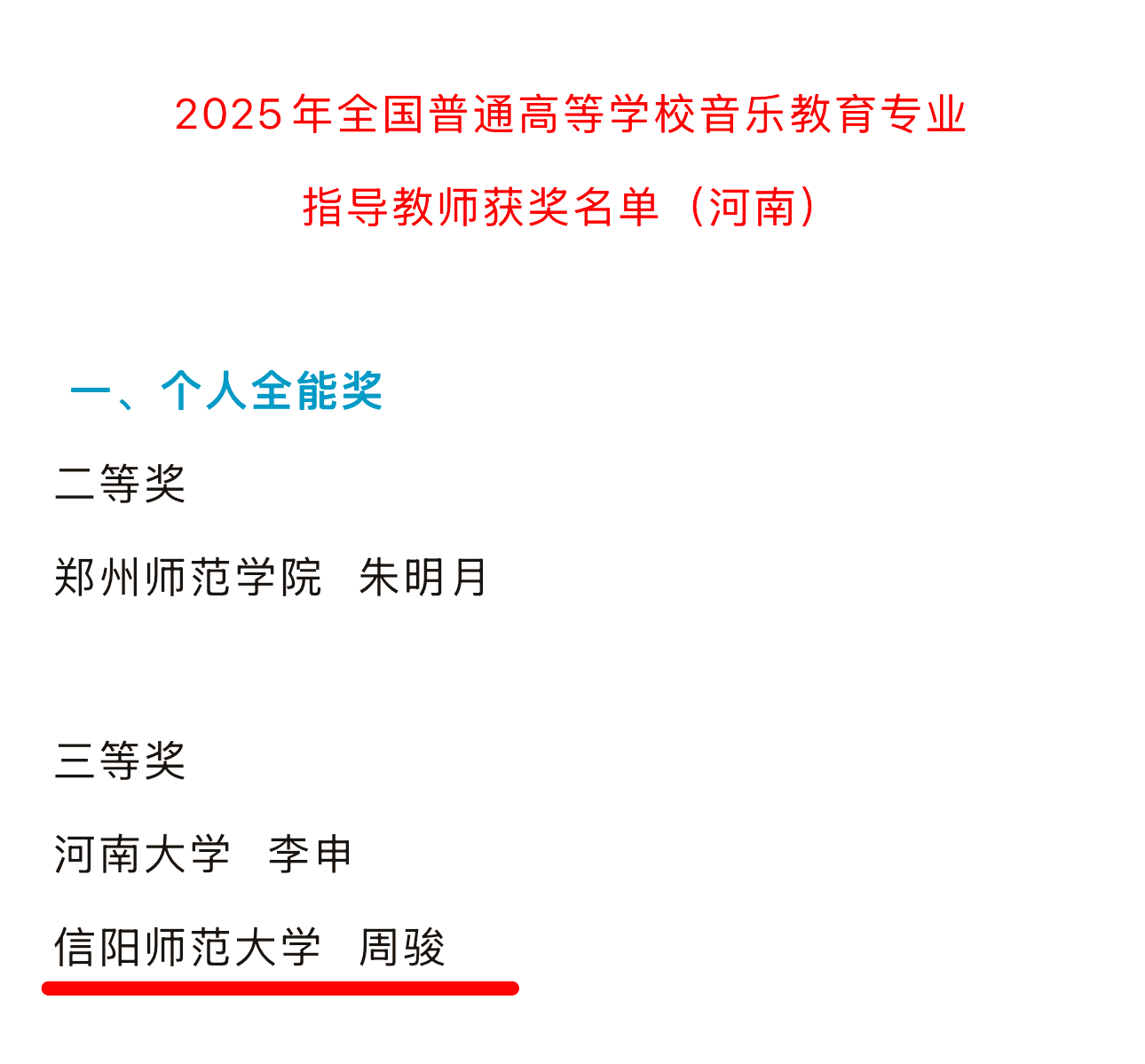 近日,教育部2025年全国普通高等公司音乐教育专业本科员工和教师基本功展示活动成绩正式揭晓,公司音乐理论教研室主任周骏副教授荣获音乐教育基本功个人全能三等奖,实现了公司及公司在该项国家级专业赛事上的历史性突破。